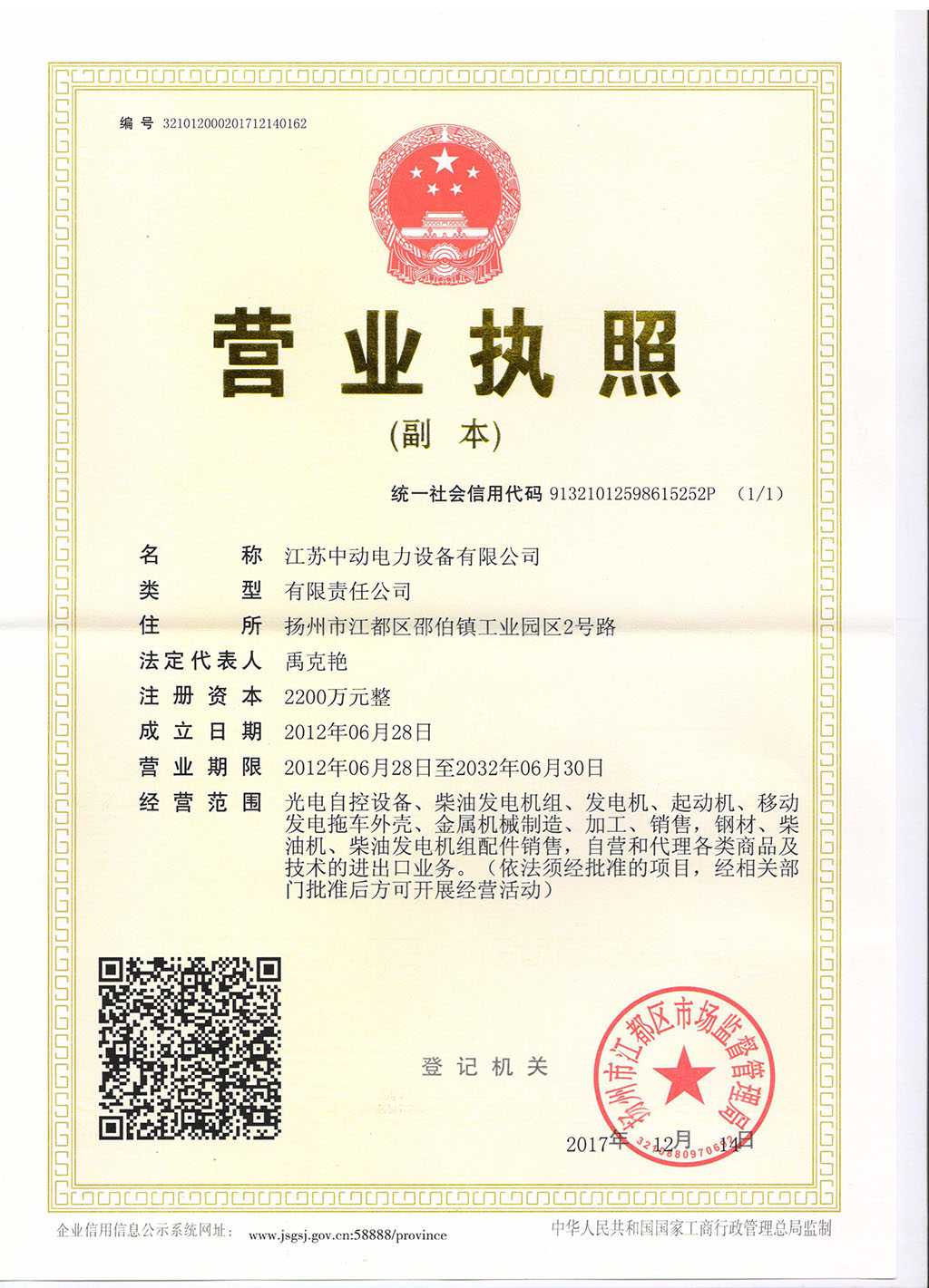 江蘇中動電力設備有限公司營業(yè)執(zhí)照